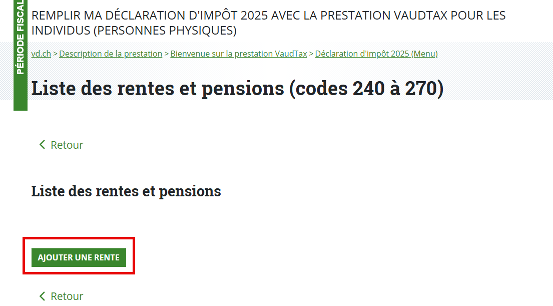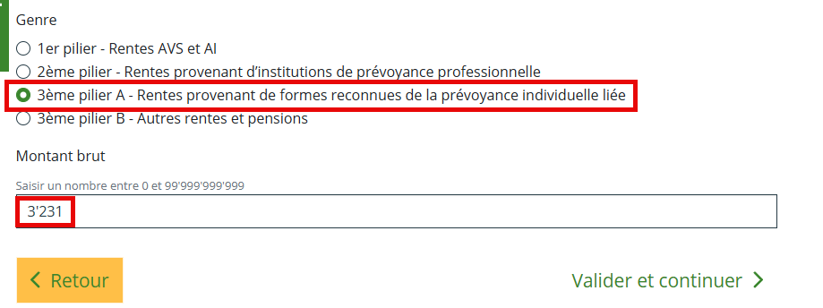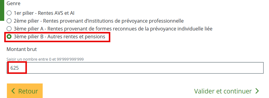 Dans la rubrique "Revenus > Rentes et pensions" :